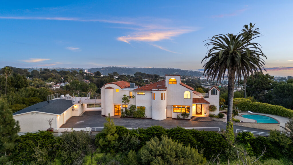 Perched on a coastal hilltop with panoramic sunset ocean views, this Santa Barbara-style home is in a league of its own. Situated on over an acre and drenched with natural light, this thoughtfully designed residence re-invents what it is to live in Solana Beach. The home offers 4 bedrooms + an office—all with water views—3 full bathrooms, and an updated detached 1-bedroom, 1-bathroom ADU. The stylish kitchen features all-new cabinetry, custom joined butcher block and hand-poured epoxy countertops fitted with stainless appliances and walk-in pantry. Both levels of the home have been upgraded with new LVP flooring, carpet, and baseboards, and newly renovated bathrooms. The stunning downstairs living room features dramatic vaulted wood-paneled ceilings, endless views of the Del Mar Racetrack and Pacific Ocean, complete with a custom wet bar and wine fridge. The entire property is sustainably powered by 81 owned solar panels, features citrus trees an avocado tree and chicken coupe. Making it a rare offering that combines luxury coastal living with privacy, space, and estate-like amenities.