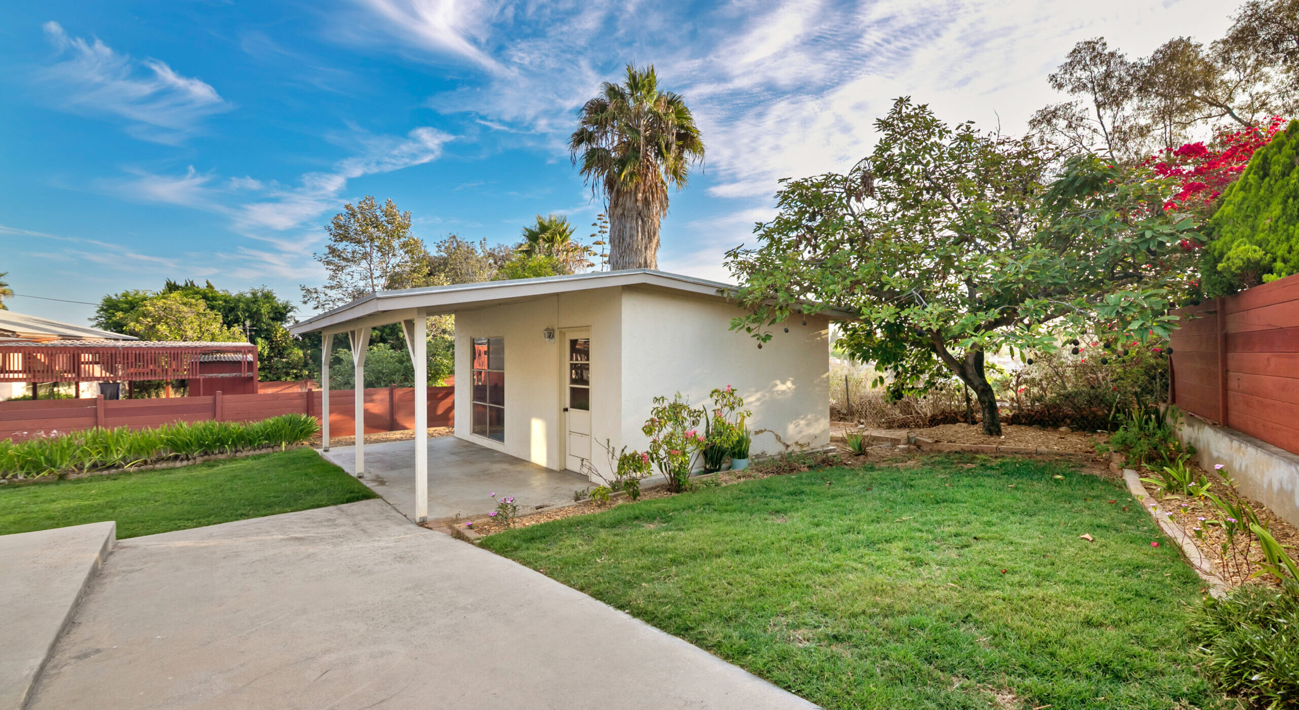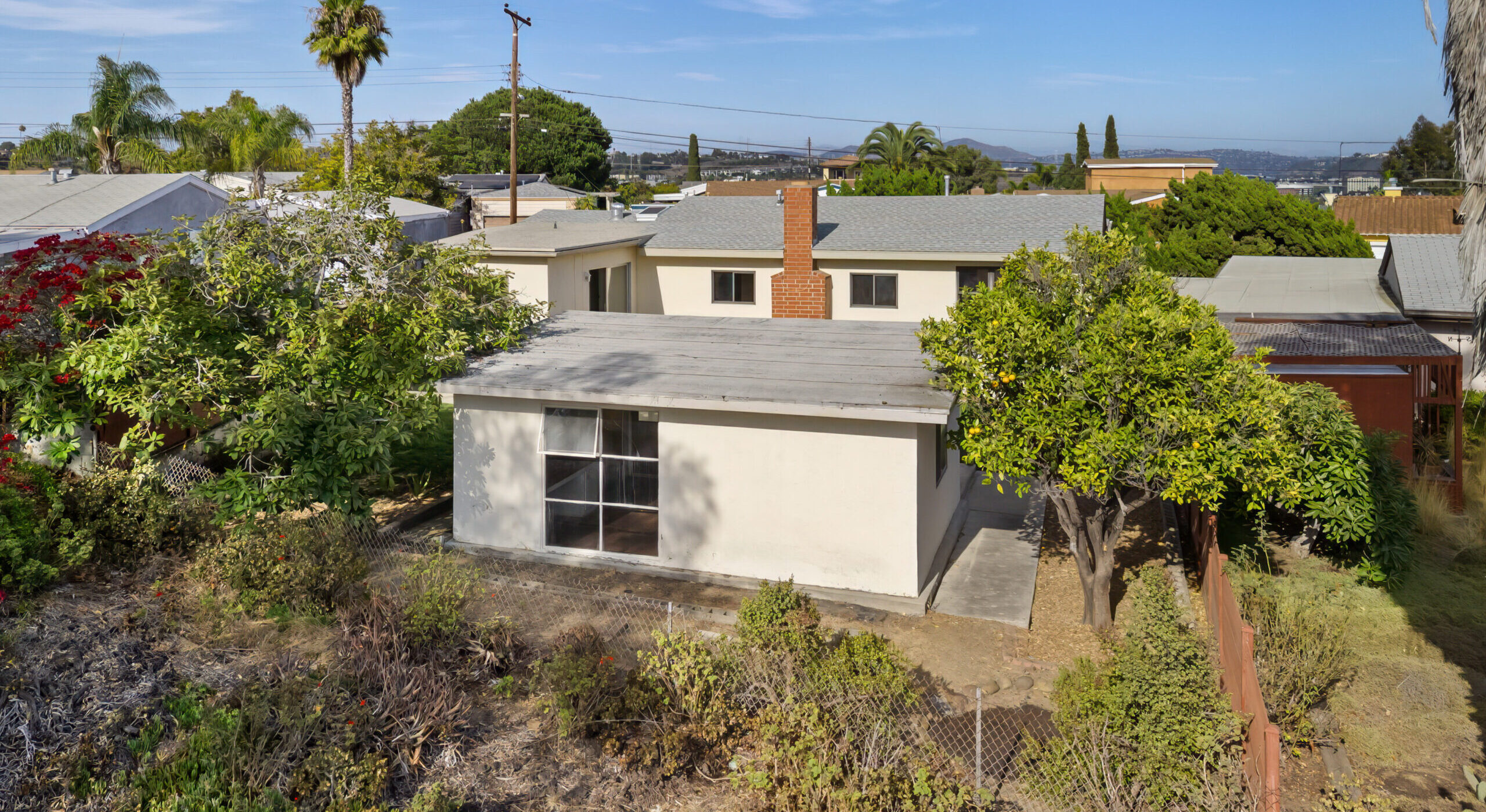 Situated in the most coveted section of Mission Heights, this stunning single-level residence masterfully combines timeless elegance with modern features. Boasting four spacious bedrooms, the home showcases original refinished hardwood floors that gleam against the freshly painted interior, with vaulted ceilings seamlessly flowing throughout. At the core of this home is a welcoming living area, complete with a wood-burning brick fireplace and dual-pane windows that flood the space with natural light, offering captivating views to the west. Property highlights include central air conditioning, forced air heating, a bonus room addition with brand-new carpeting, indoor laundry hookups, a side entry, and a glass sliding door leading to the expansive rear yard. Nestled on a generous elevated lot, the property is adorned with mature avocado and citrus trees, creating a serene and picturesque setting for outdoor gatherings, including a separate detached workshop. This versatile space offers endless potential, whether you're an artist seeking an inspiring studio, a musician desiring a private rehearsal space, or envisioning the potential for an ADU. The attached 2-car garage and extended driveway offer additional space for boat or recreational parking.