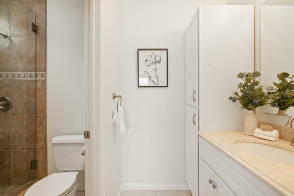 Discover the allure of this top-floor condo in Arbor Village, where a tranquil lifestyle awaits amidst a secluded setting nestled on a tree-lined street in Hillcrest. This two-story end unit provides unparalleled privacy, sharing only one wall, and features dual primary en-suites, including one with an expansive walk-in closet. The inviting floor plan encompasses a spacious living room with a fireplace, a dining area, and a newly renovated kitchen equipped with quartz countertops, a chic backsplash, custom cabinetry, and stainless appliances. From the private balcony, indulge in the picturesque views of the neighborhood. Elegantly crafted with luxury vinyl plank flooring, this unit includes in-unit, full-size laundry and comes with two non-tandem parking spaces.