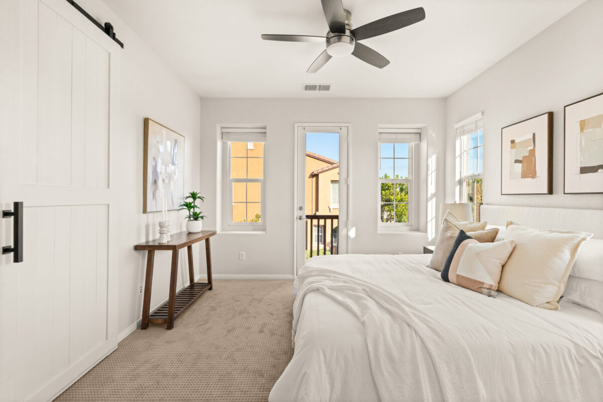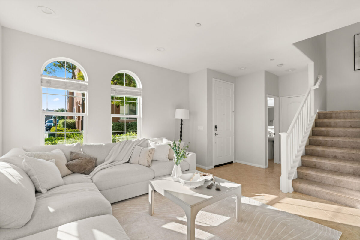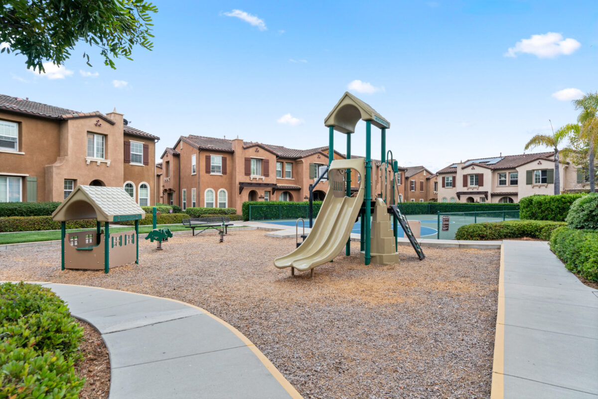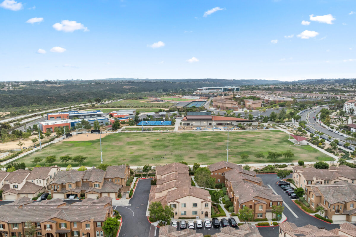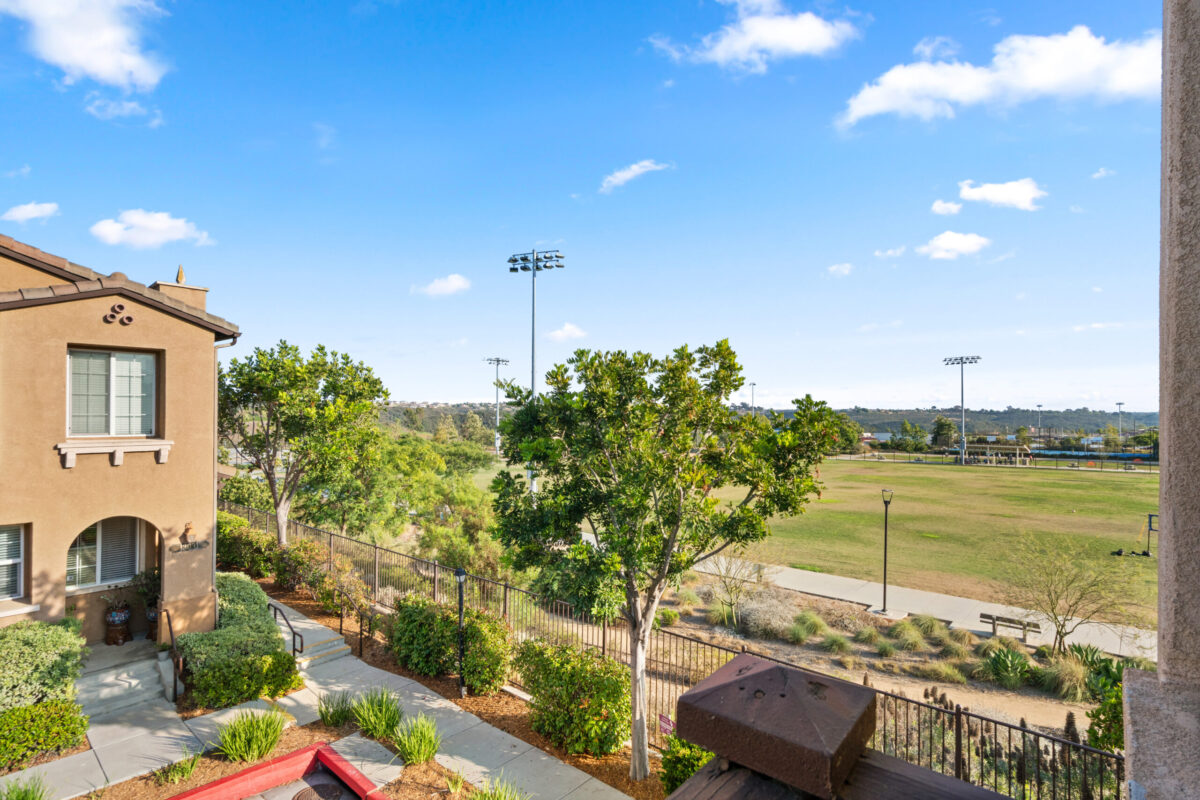 Discover the allure of this 2-story townhome nestled in the prestigious Airoso community within Pacific Highlands Ranch. This coveted end-unit features an expansive 4-bedroom, 2.5-bath floor plan, ideally situated to capture westerly views of the green park, allowing plenty of light to shine through. The home's prime location is accentuated by a lovely greenbelt right outside the front door, enhancing the outdoor space. Retreat to the primary suite, complete with a large walk-in closet, a dual-sink vanity, and a private balcony. Designed for convenience and comfort, this home includes an upstairs laundry room, a smart tankless water heater, upgraded Milgard dual-pane windows, central air conditioning, all-new carpeting, and new energy-efficient LED fixtures, including recessed lighting and ceiling fans. The upgraded kitchen, with a complete set of newer smart stainless appliances, flows into a separate dining area and open living room, while the attached 2-car garage with overhead storage offers seamless access to the home.