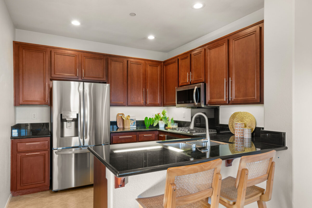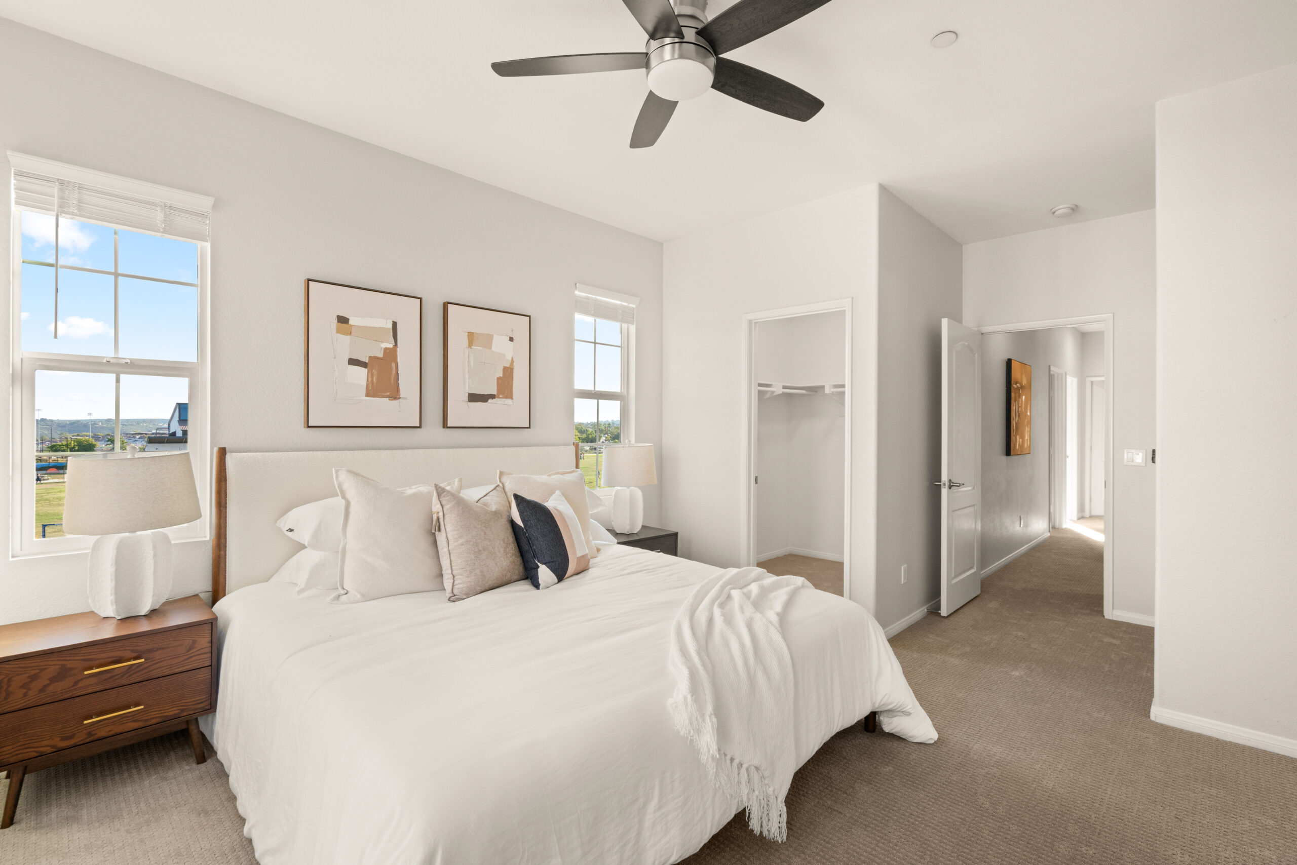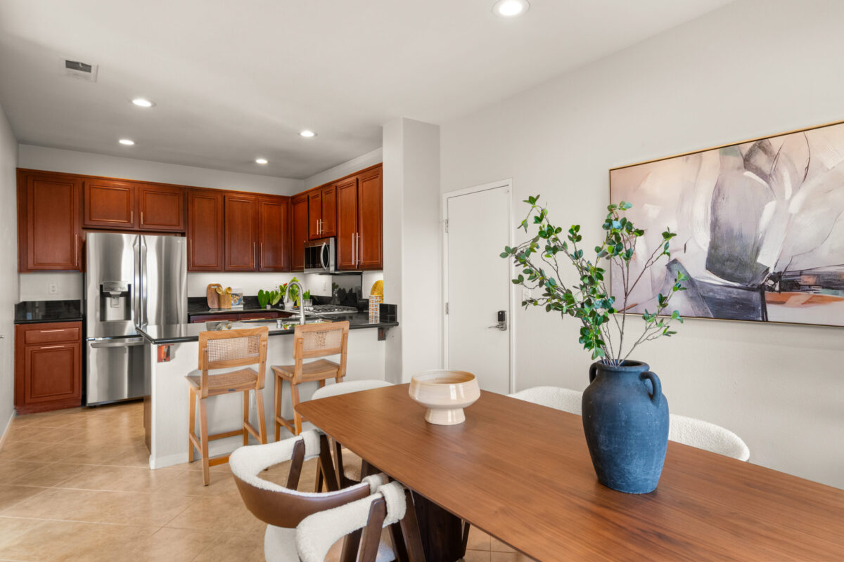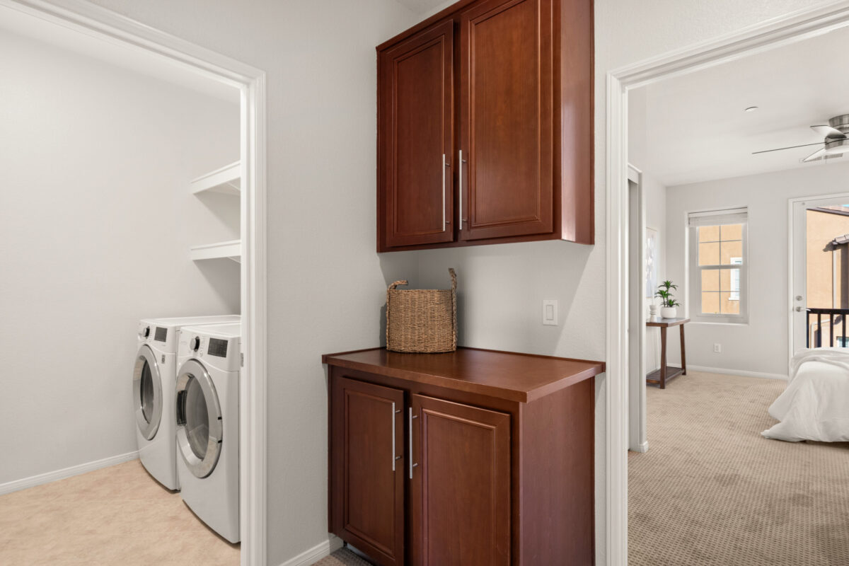 Discover the allure of this 2-story townhome nestled in the prestigious Airoso community within Pacific Highlands Ranch. This coveted end-unit features an expansive 4-bedroom, 2.5-bath floor plan, ideally situated to capture westerly views of the green park, allowing plenty of light to shine through. The home's prime location is accentuated by a lovely greenbelt right outside the front door, enhancing the outdoor space. Retreat to the primary suite, complete with a large walk-in closet, a dual-sink vanity, and a private balcony. Designed for convenience and comfort, this home includes an upstairs laundry room, a smart tankless water heater, upgraded Milgard dual-pane windows, central air conditioning, all-new carpeting, and new energy-efficient LED fixtures, including recessed lighting and ceiling fans. The upgraded kitchen, with a complete set of newer smart stainless appliances, flows into a separate dining area and open living room, while the attached 2-car garage with overhead storage offers seamless access to the home.